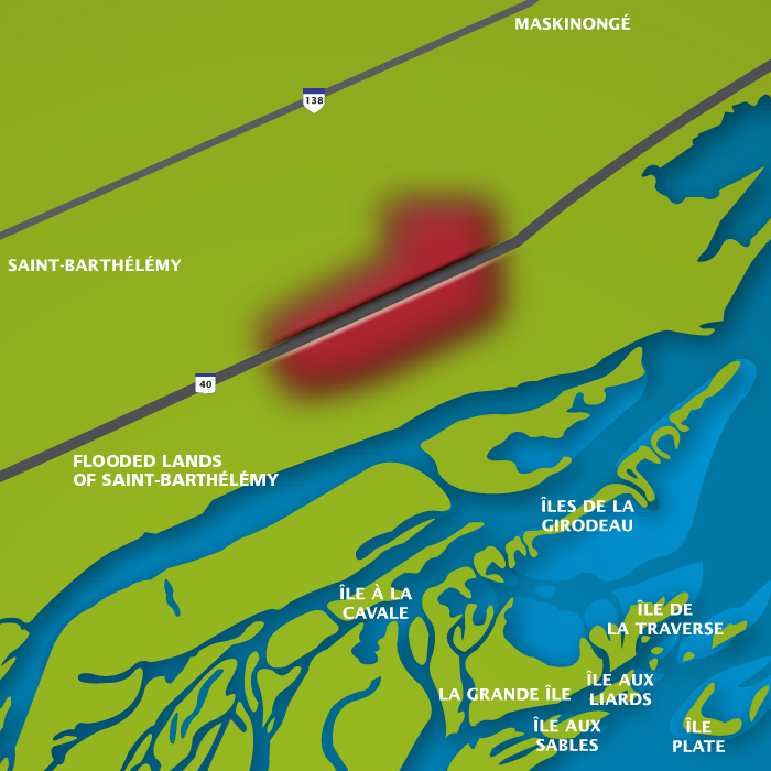 The Saint-Barthélémy managed marshes make flooded lands accessible to ducks and fish. These marshes are located near Highway 40.